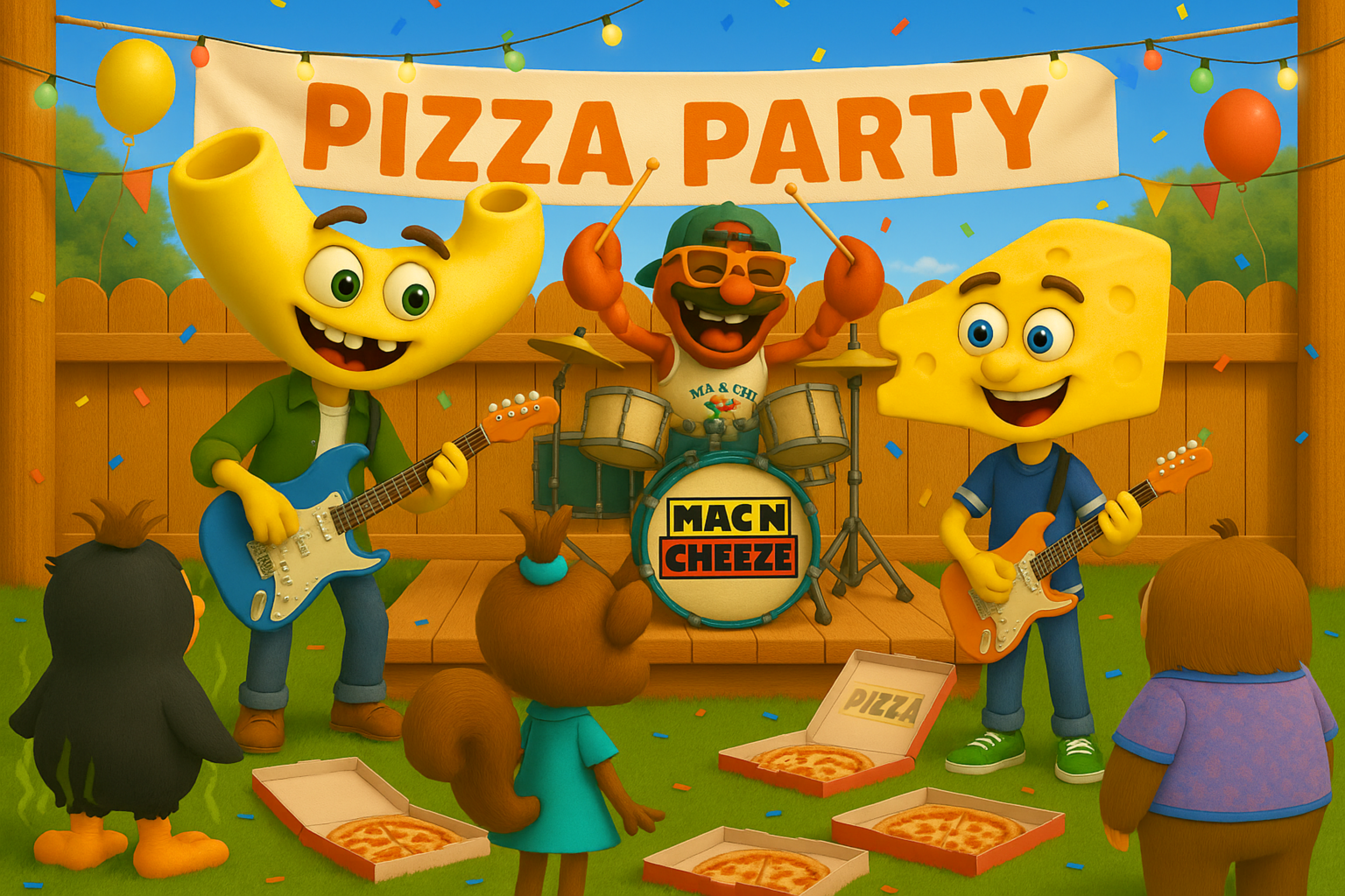 Mac N Cheeze is a fun, music-first kids’ project created by longtime friends Ryan O’Reilly and Kelly James. What began as silly tunes for Ryan’s kids has grown into a full creative universe of characters, videos and music designed to make families laugh, dance and sing together.